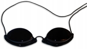 Wysokiej jakości okulary do używania podczas fototerapii / naświetlania lampami UV opalania na solarium lub słońcu.